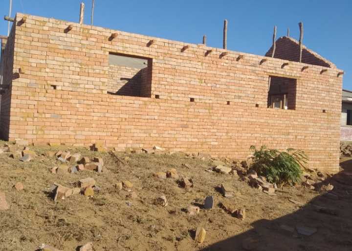 Dès le départ, la priorité était claire : remplacer les murs en jonc, trop délabrés et peu sûrs, par des murs en briques plus solides. En effet, les parois actuelles étaient si fragiles que des personnes pouvaient facilement s’introduire à l’intérieur comme on peut le voir sur la photo ci-dessus.